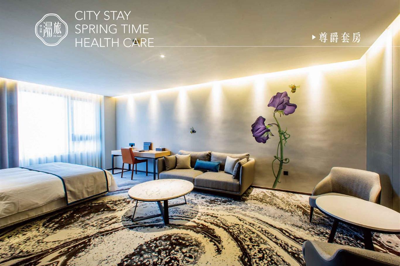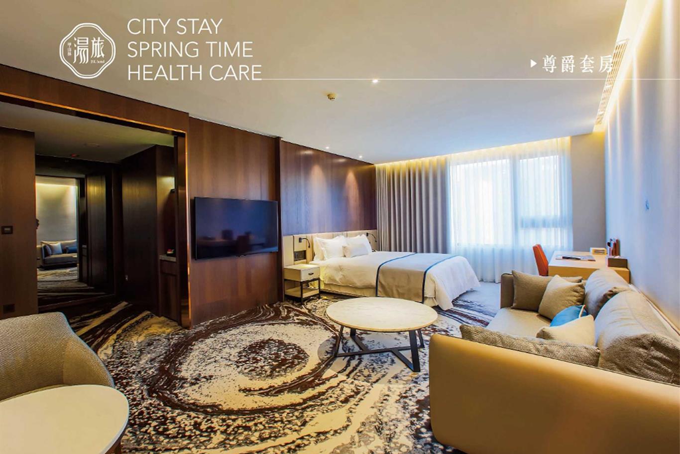 ・房內特殊設施:大片落地窗、雙人沙發、茶几、環保冰箱、小農茶包、60 吋液晶電視、棉質浴袍、高級盥洗備品、感應式門鎖系統、緊急求救鈴、燈光系統。
