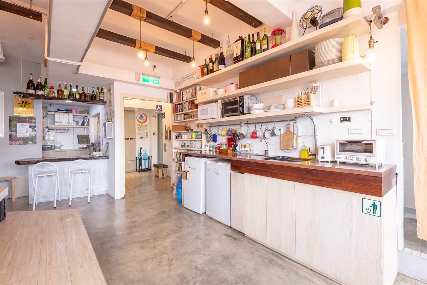 設備齊全的廚房都可以自由使用。我們有完整的廚房設備,包含:冰箱、微波爐、烤土司機、冷/熱飲用水、茶包、鍋碗廚具等,供旅客準備美味佳餚並與旅人分享。